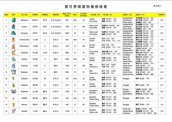 圖片、譯名、CP值、進化需求、技能、能量技...等相關。